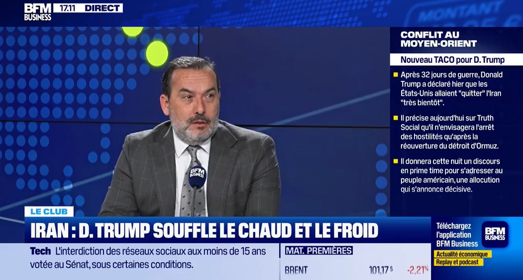 Le Club : Climat de marché : Rebond oui mais dans la prudence - Mercredi 1er avril, Sébastien Korchia, directeur général et directeur des investissements de Cogefi Gestion, et Raphaël Thuin, directeur des stratégies de marchés de capitaux chez Tikehau Capital, se sont penchés sur les réactions des marchés après l'annonce hier de Donald Trump que les États-Unis allaient quitter l'Iran très bientôt, le rebond du climat de marché, les taux qui poursuivent leur détente en séance aujourd'hui, la BCE et la FED qui pourraient augmenter leur taux, la bonne performance des "utilities" en bourse, dans l'émission BFM Bourse présentée par Antoine Larigaudrie sur BFM Business [...]